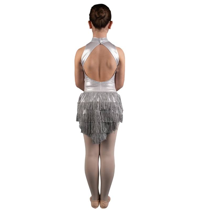 Le frange in lurex amplificano il movimento ad ogni passo, mentre lo slip integrato in lurex garantisce copertura e tenuta durante l’esecuzione.